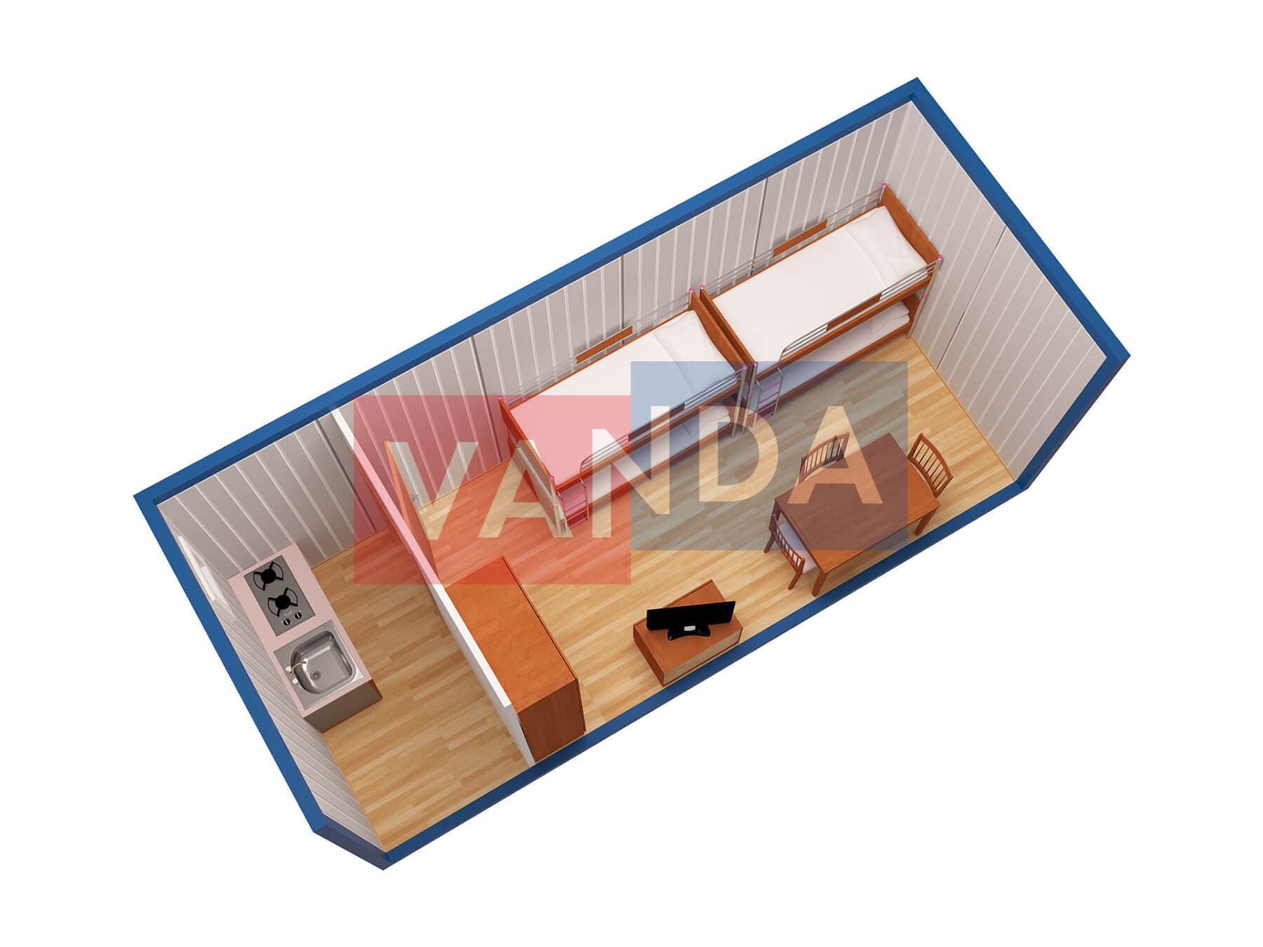 Металлическая бытовка с кухней в тамбуре 5,85 x 2,4 - Вагонка ПВХ